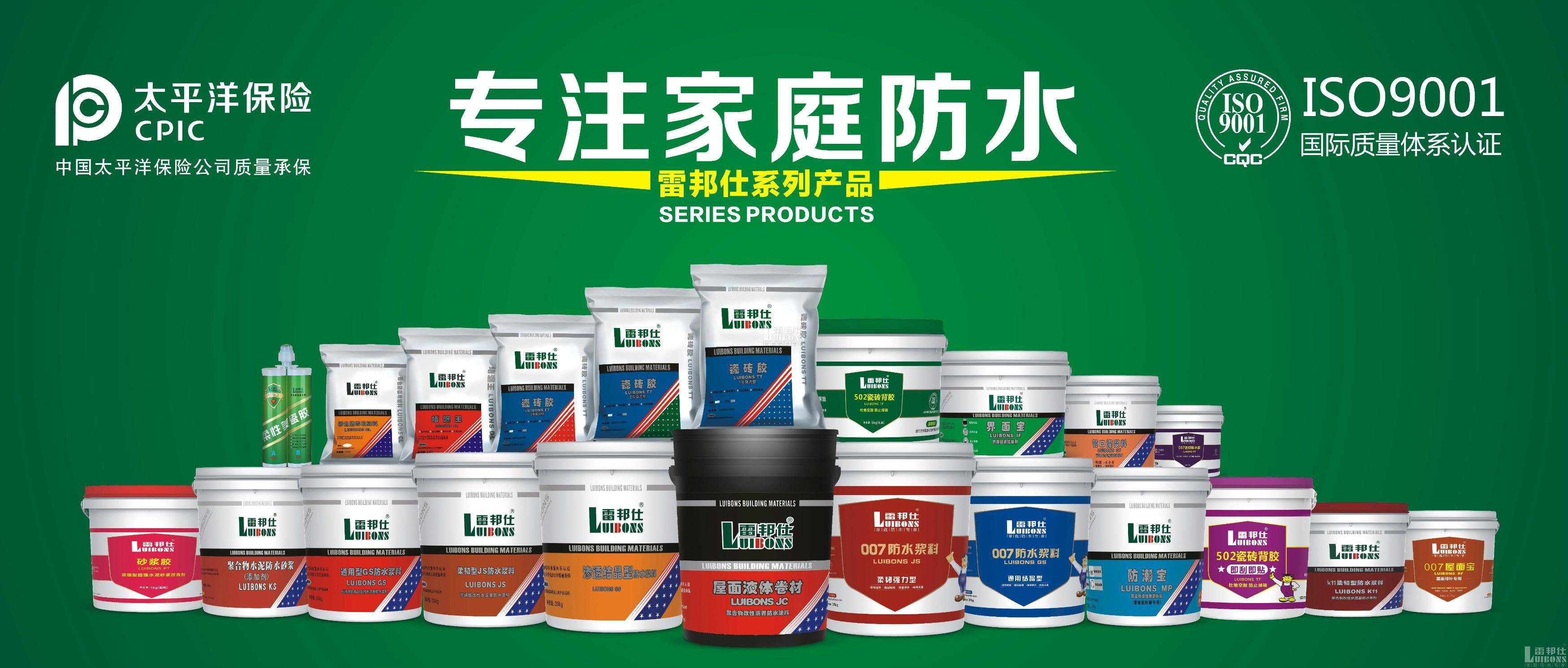 雷邦仕多年來專注家庭防水,專業從事家庭防水材料、施工和應用技術的系統研發及產品推廣。 雷邦仕以進口優質原材料為基礎,憑借積淀深厚的技術實力,結合家庭防水實際需求,17年來先后開發出通用、 柔韌型防水漿料、瓷磚膠、彩色防霉填縫劑、防水膠、堵漏王、美縫劑、美瓷膠及行業獨創產品“防潮寶”、“管口灌漿料”和國家發明專利產品“砂漿膠”、“瓷磚背膠”,形成了完整的家庭防水產品體系,有效解決家庭防水、防潮、堵漏的市場需求。